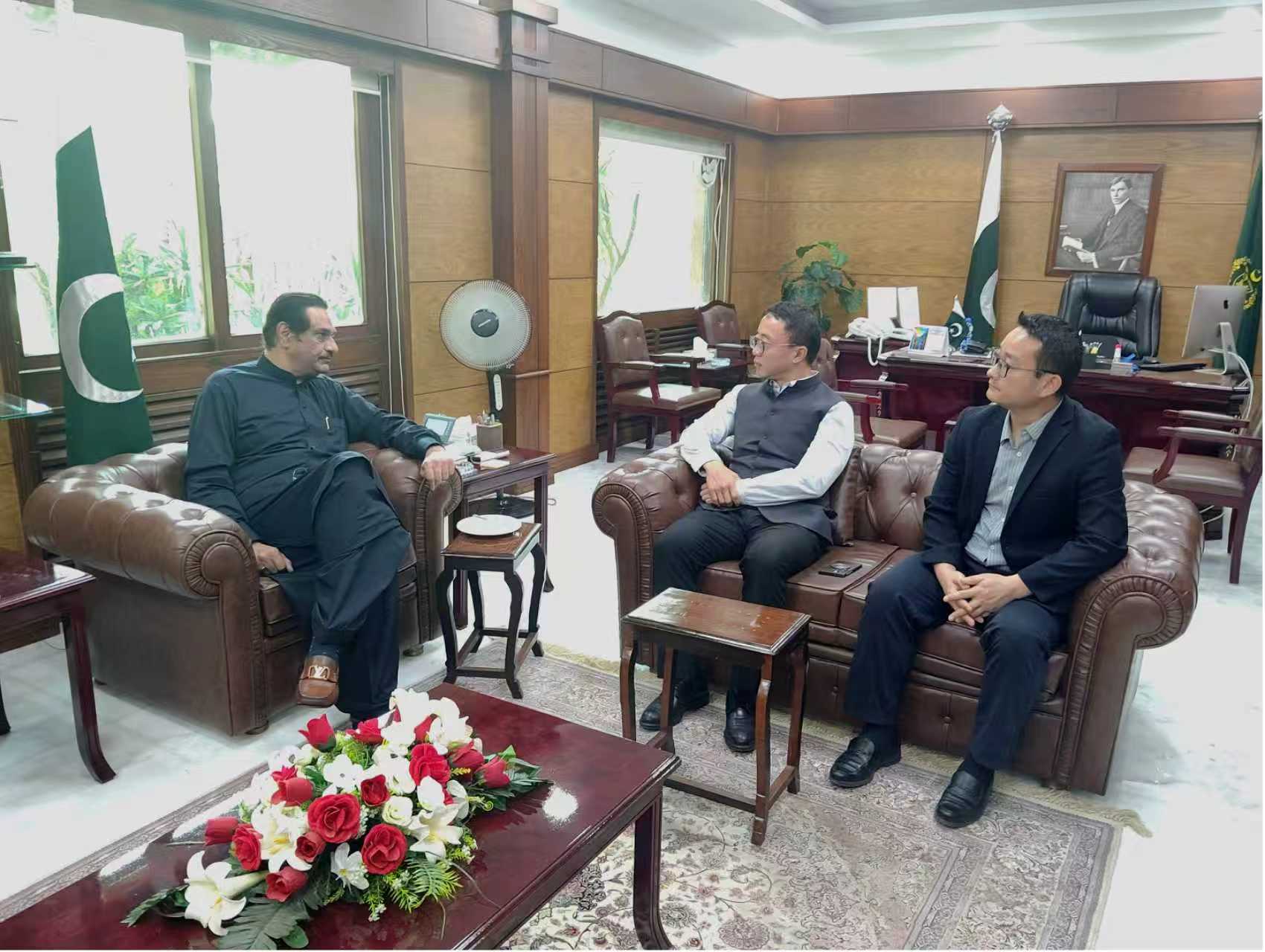 11月3日,杨广元公参应邀往见巴基斯坦国防生产部长哈拉吉,双方就加强中巴务实合作交换了意见。解洋二秘、王存二秘陪同。