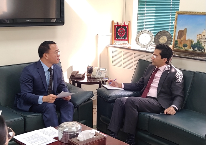 1月21日,杨广元公参应约拜会巴基斯坦石油部长马利克,就加强中巴矿业领域务实合作交换意见。巴总理中国事务特别顾问扎法尔、石油部联秘纳迪姆等在座。丁昊皓二秘、解洋二秘陪同。
